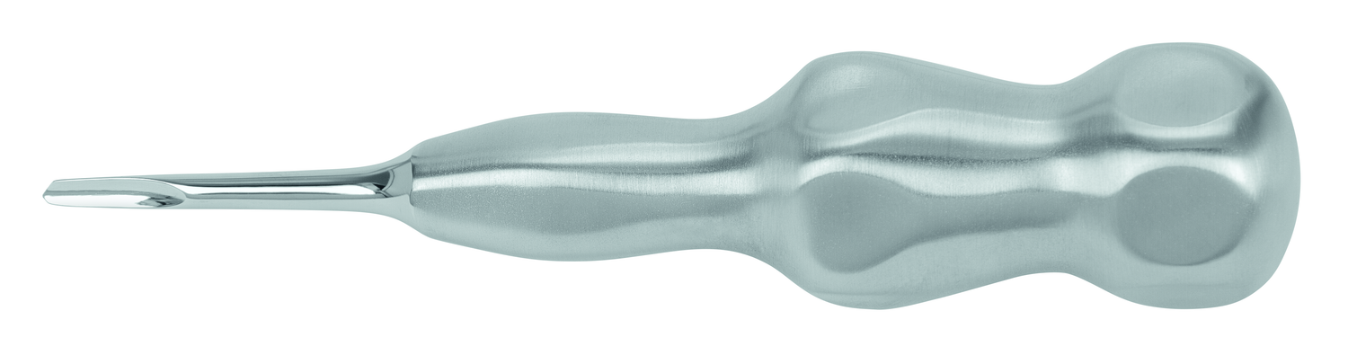Root Elevator, Beveled Edge Right, 3mm, Straight, Short Shaft, Carpal Handle, by Dr. Hürzeler and Dr. Zuhr, TOUCHGRIP Design.