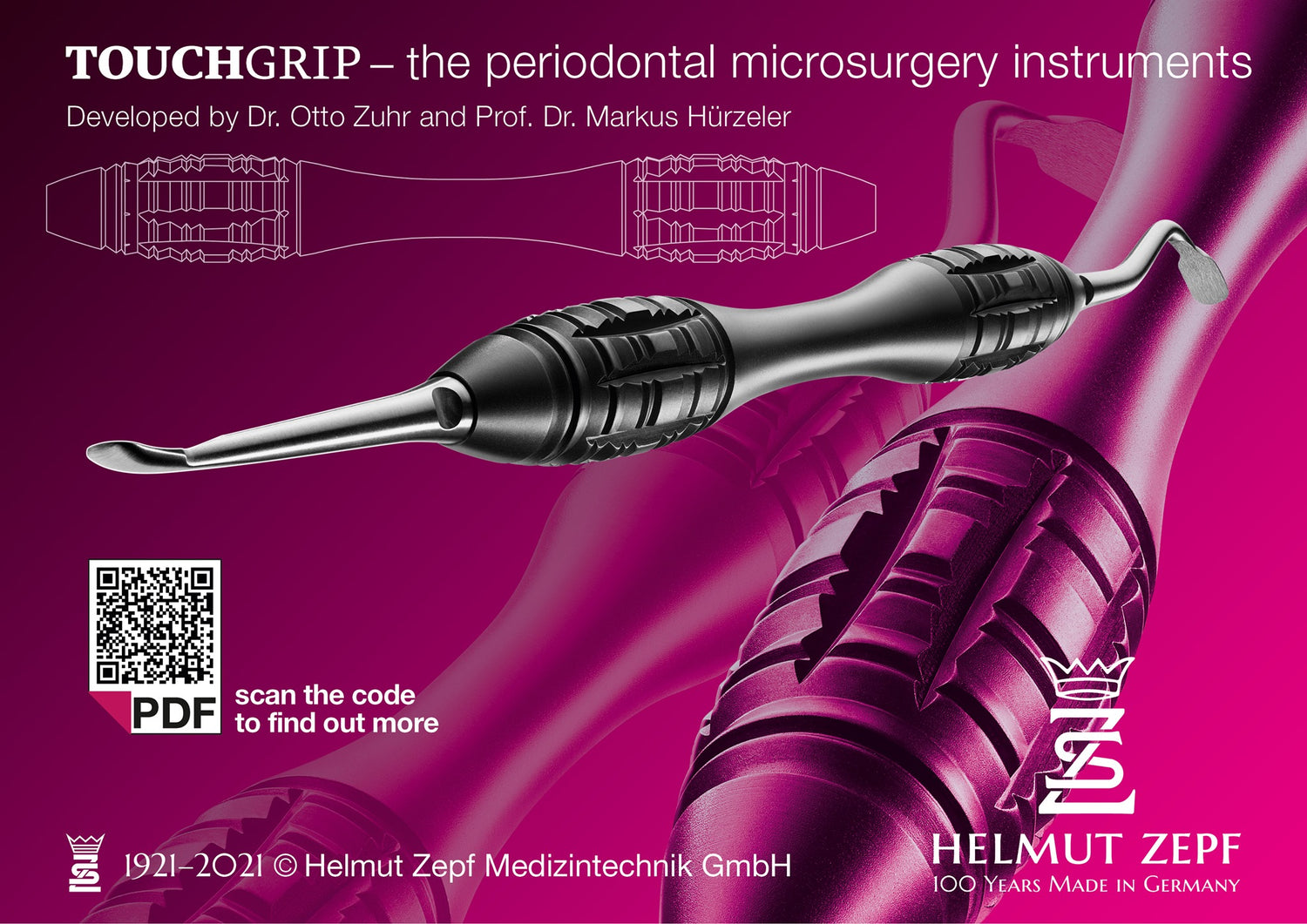 Based on many years of experience in clinical application, Prof. Dr. Hürzeler and Dr. Zuhr developed a set of instruments meeting the basic requirements of implant surgery and periodontal surgery. The name stands for a combination of optimal grip and ideal feedback for the user. In this regard, no great distinction is made between the micro- and macrosurgical field of application. Instead, sets for both indications are now provided.